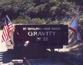 Traversing the double bow-knot, locals and tourists alike delighted in jaw-dropping vistas as they reached the 2,571 foot summit at East Peak for a day of unparalleled sightseeing, dinner at the Tavern of Tamalpais and dancing in the Pavilion. At day's end, the daring would climb aboard the Gravity Car, and the "Gravity Man" would "turn on the gravity", and down they would coast over 8 1/4 miles, around 281 turns on the mountain's 7 % grade to the Mill Valley depot or Muir Woods. This was clearly the "E" ticket ride of its day!